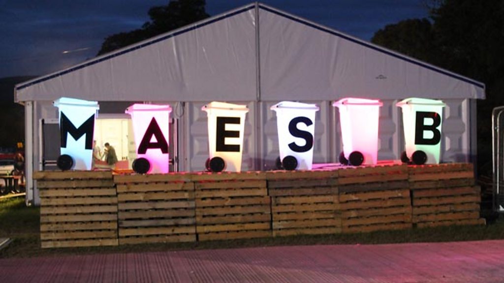 Magi Dodd yn sgwrsio gyda Sen Segur yn Maes B Eisteddfod Dinbych.