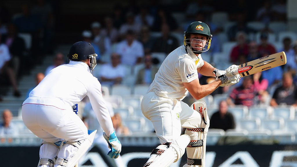 Australia's James Faulkner is out for 22 to Stuart Broad.