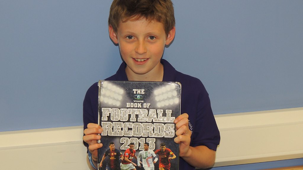 Luke à Inbhir Nis agus an leabhar a' leugh e Vision Book Of Football Records 2013.