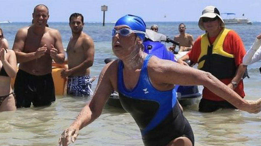 64 year old Diana Nyad is the first to swim from Cuba to the US without a shark cage.