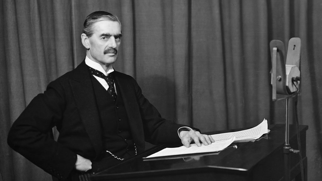 On September 30th 1938, Neville Chamberlain returned from negotiations with Hitler promising "peace in our time". He had agreed for Hitler to take over the Sudetenland in western Czechoslovakia, as part of a policy known as appeasement.