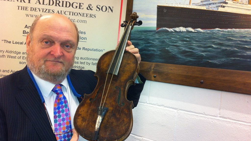 Alan Aldridge with the violin, thought to have been played by Wallace Hartley on Titanic