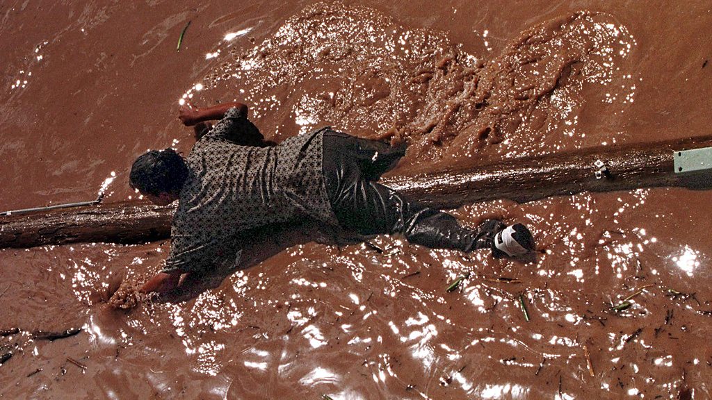 In 1998 Central America was hit by Hurricane Mitch. More than 18,000 people died, hundreds of thousands were left homeless. We hear from two people who were in Honduras, the country worst hit by the huge storm. (Photo: One young man balances on a log to get across a river swollen by the storms in Honduras. Credit: Yuri Cortez/AFP/Getty Images)