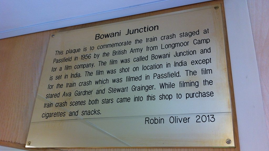 A commemorative plaque has been in the Hampshire hamlet of Passfield, near Liphook. It was in the shop that was frequented by the stars of the 1956 film 'Bhowani Junction' - parts of which were shot at the nearby Longmoor Military Railway. Our reporter Neil Sackley was at the ceremony - along with the man behind the plaque - Robin Oliver.