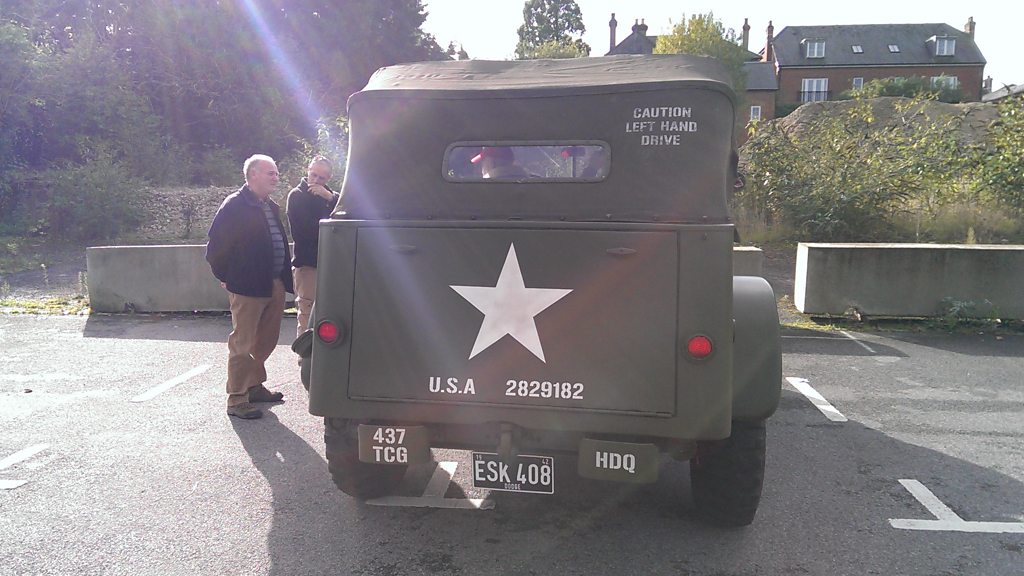 Today, Ben's at Hungerford Railway Station where the majority of American troops arrived. With Ben is local historian Roger Day, enthusiast Neil Stevens who grew up in Marlborough, Andy Harding from Swindon whose grandfather was an American paratrooper and Chris Main who owns the wheels.