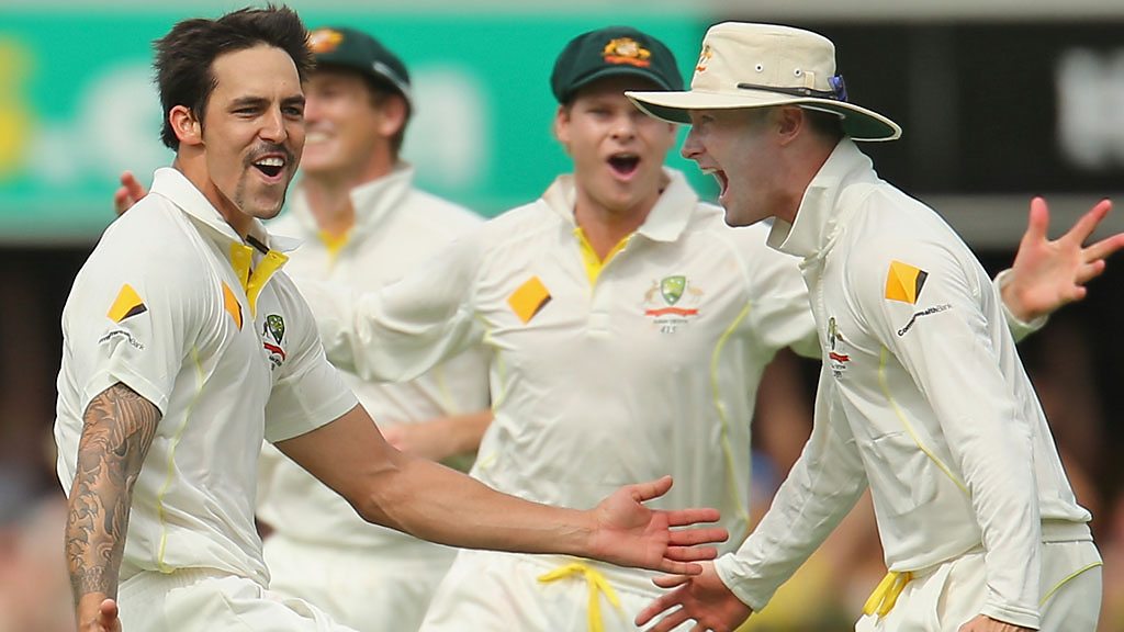 Australia take command on the second day of the 1st Test as England's batting collapses.