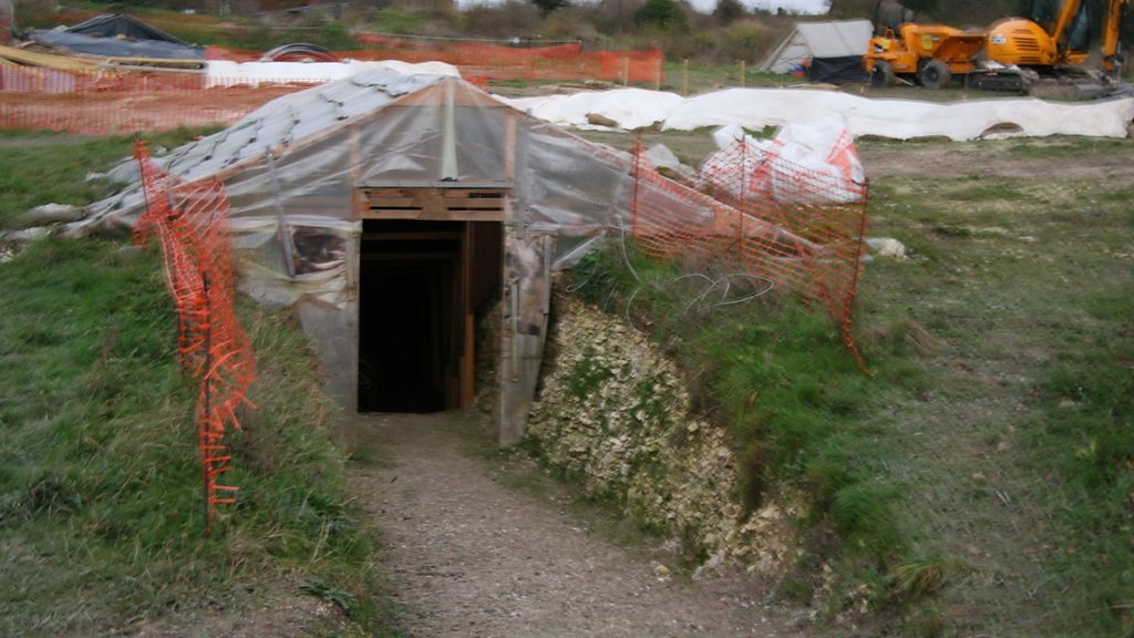 Lesley Woodbridge and BBC Shropshire's Nick Southall look around the La Boisselle excavation site, where Lesley will be lowered into the tunnels used by her great grandfather.