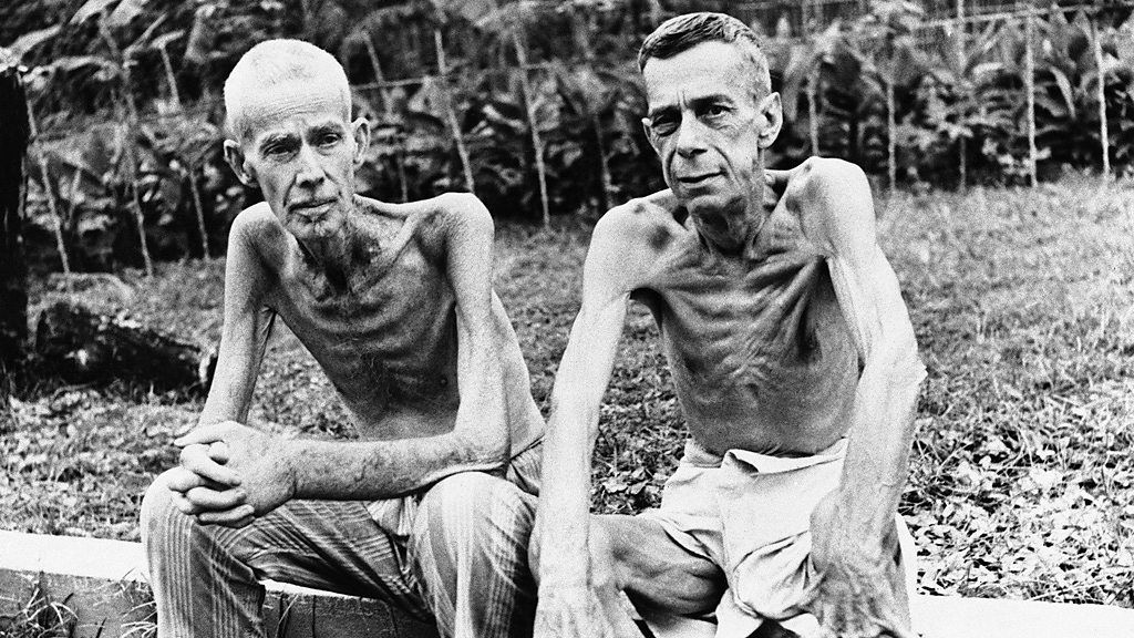 Thousands of foreign civilians were interned in camps when Japanese troops occupied the Philippines in World War II. Many of the inmates suffered from acute malnutrition. We hear the story of one boy, Desmond Malone, who was interned at the Santo Tomas camp in Manila. Photo: American inmates of the Santo Tomas internment camp after liberation by US forces in February 1945 (AP Photo/Pool)