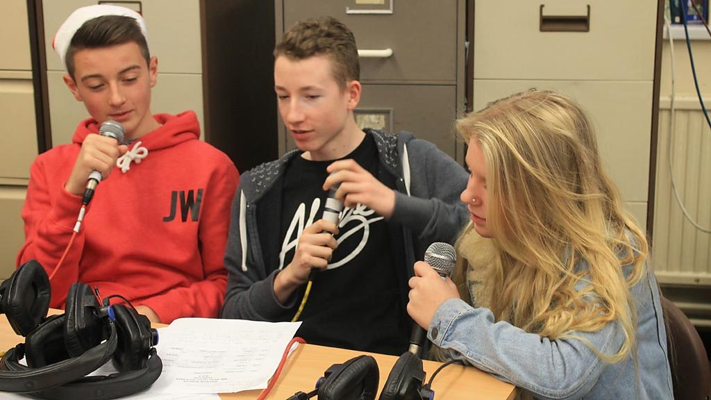 Criw Maes Garmon sy'n holi cwestiynau Nadoligaidd i'w ffrindiau a'u hathrawon