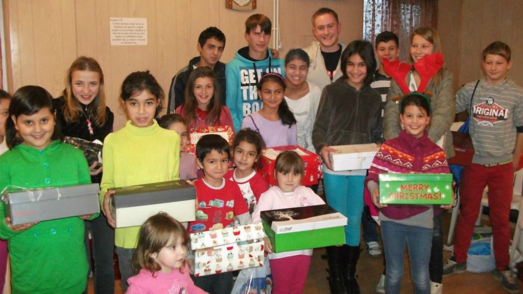 Follow the journey of a Christmas shoebox sent by children in Surrey to Romanian orphans.