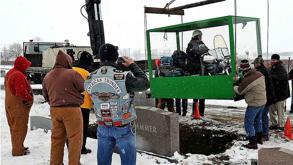 Ohio funeral director David Vernon tells Up All Night about Bill Standley's final wishes - to be buried on his 1967 Harley Davidson Electra Glide, surrounded by his rodeo trophies