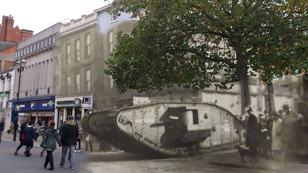 The first ever tank was invented at a Lincoln engineering company, William Foster & Co Ltd in 1916. They had been approached by the Admiralty Landship Committee to design a prototype tank. The top secret work was carried out in a room at the White Hart Hotel in the city by Foster’s Managing, Director William Tritton, his Chief Draughtsman, William Rigby and Major Walter Wilson of the War Cabinet. The first design was deliberately falsely described as a water carrier for Mesopotamia to conceal its true purpose. The workers referred to them as ‘water tanks’ or simply ‘tanks’ and the name stuck. On 22 September 1915 Tritton sent the following telegram to the Admiralty: ‘New arrival by tritton out of pressed plate STOP Light in weight but very strong STOP All doing well Thank you STOP Proud parents’ The tanks of today are still recognisably from the original design, made in Lincoln. Location - White Hart Hotel, Lincoln, Lincolnshire LN1 3AR Image shows Cornhill, Lincoln Old photograph courtesy of Lincolnshire Archives