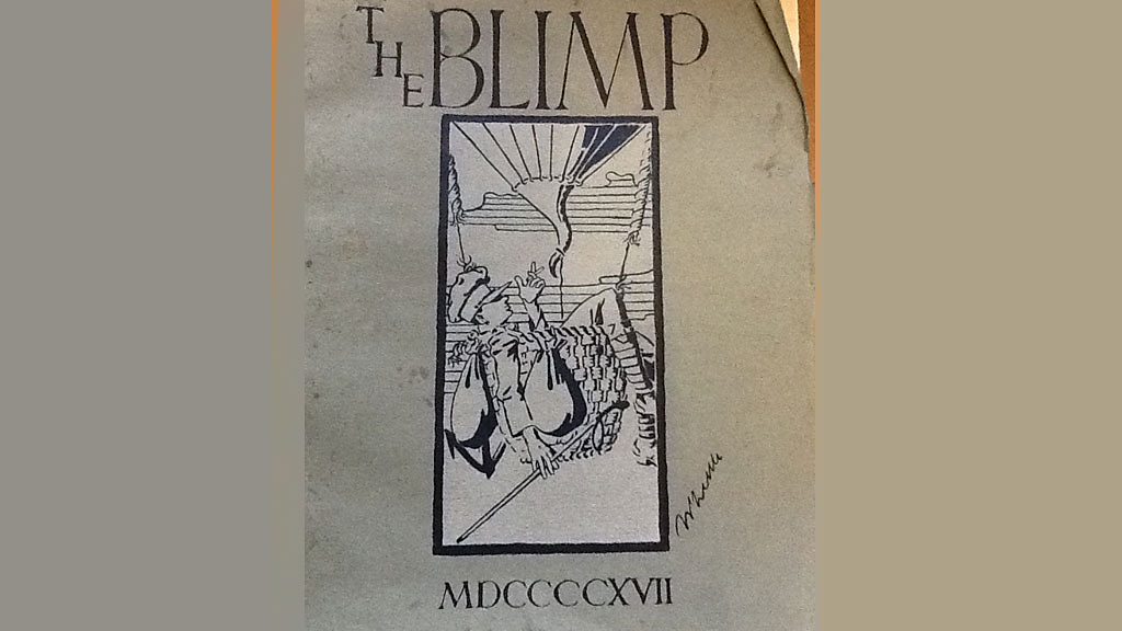 The No. 2 Officer Cadet Battalion, known as “F” company, trained in Cambridge, initially at Christ’s College, then at Ridley Hall Theological College. The company had a mix of nationalities, including South Africans, Australians, Canadians and British. Their creativity and satire emerged in two publications: “The Blimp” in 1917, and “A Medley in F” the following year. Printed by W Heffer and sons in Cambridge, the cadets sold advertisements to various businesses in the city. Poems, articles, cartoons, and a musical composition called “The Blimp” (originally meaning a non-rigid floating airship) gave an insight to the spirit of the men during their time in Cambridge. Many of the items were just signed with an initial to protect the identity of any cadet who may have overstepped the mark. Development Officer Elaine Thornton from Ridley Hall discovered the magazines during a search through the archives. Location: Ridley Hall, Newnham Walk, Cambridge CB3 9HG Image shows the front cover of “The Blimp” Photograph courtesy of Elaine Thornton