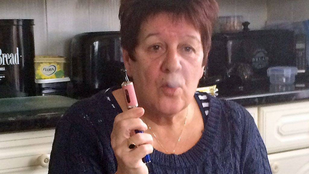 Dylan Iorwerth fu'n holi Miriam Thomas sy'n defnyddio e-sigarennau