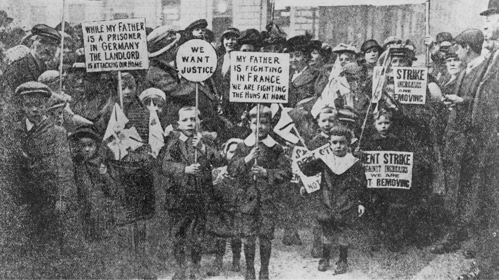 Mary Barbour and the Glasgow Rent Strikes (Glasgow Old Sheriff Court Building ) G1 1TF On the 17th of November 1915, thousands of women along with engineering and shipyard workers descended on Glasgow Sheriff Court and the City Chambers. They were there to protest the fate of eighteen Glasgow tenants who had been taken to court for non-payment of rent. The demonstration was the culmination of months of protest led by a Govan based woman called Mary Barbour. She was fiercely opposed to the rent increases that had been imposed by Glasgow landlords - in some cases up 23% on pre-war levels. Mary Barbour had a talent for organisation and set up tenants committees and also co-ordinated eviction resistance. Women were posted as sentries to watch out for Sheriff's officers who had come to evict families who had fallen into rent arrears. Mary Barbour's "army" would be summoned with a bell or Mary's famous football rattle. The women would form a scrum to prevent officers gaining entry to houses and often pelted them with flour or rotting food. With time, the resistance to rent increases grew more militant, and by November 1915, some twenty thousand tenants were on rent strike. As a result of the November 1915 demonstration, David Lloyd George, then munitions minister, was called. He instructed Glasgow Sheriff Court to release the tenants and that he would take action. Less than a month later Parliament passed into law the Rent Restrictions Act, setting rents for the remainder of the war at pre-war levels. Mary Barbour's army had won. Image Credit: Glasgow Museums