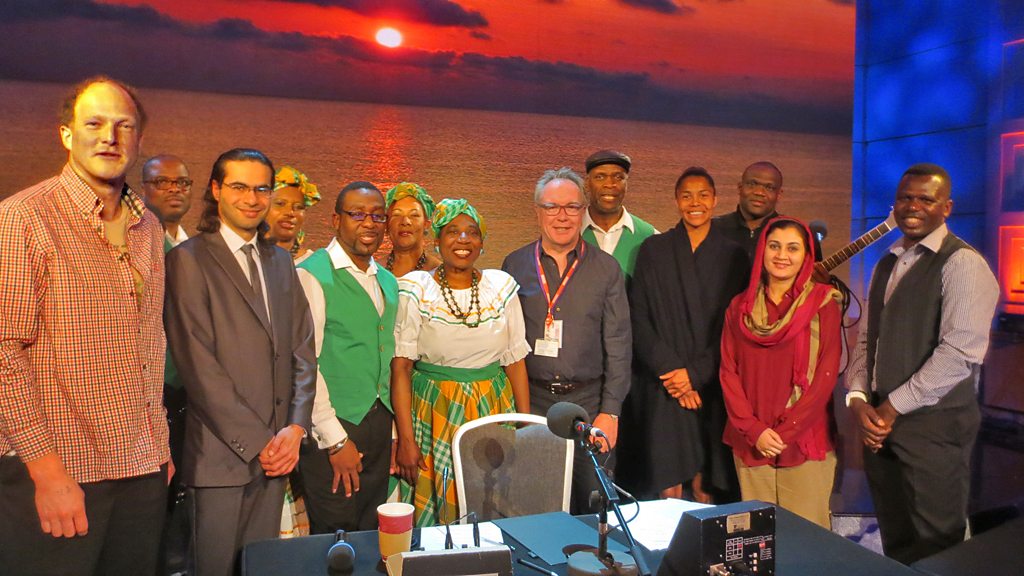 As our 'Freedom Season' comes to an end, Outlook brings together guests from around the world in the BBC's Radio Theatre - all of them have experienced a personal journey to freedom. Tom Hart Dyke is a horticulturist who was kidnapped by an armed gang in the Colombian rainforest while hunting for rare orchids. He was held hostage for nine months, and kept himself going through the ordeal by creating gardens in the jungle. Gertrude Shotte had a dramatic escape from the volcanic eruption that destroyed much of the Caribbean island of Montserrat. She has formed a choir with other exiles from Montserrat in London who sing to remember their lost home. Humaira Awais Shahid, dubbed "the most unmanageable woman in Pakistan", is a journalist and politician whose fight to free woman from acid attacks, forced marriage and child prostitution became very personal. Ali Abdulemam was a leading Bahraini blogger and free speech advocate who was imprisoned for his writing. He was also forced to spend two years in hiding, confined to a small room, before being smuggled out of the country to safety. Ayo is a German born singer-songwriter with a Nigerian father and Romanian mother. She was sent into foster care and went on to become a double-platinum selling musician. John Bosco Nyongi is a Ugandan who had to flee his country when his secret life as a gay man was broadcast on national radio. He's now been granted asylum in the UK, but at one point was deported back to Uganda where he was attacked and imprisoned.
