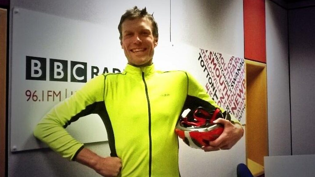 Reporter Bob Diggles arrives back at base after his Mouths, Mountains and Miles challenge