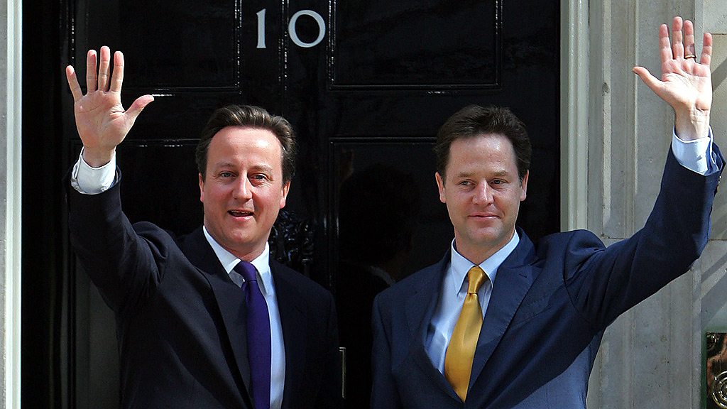 The story of the UK general election in 2010, in which a Conservative Party and Liberal Democrat coalition ended 13 years of Labour government. Voices in this clip include Tony Livesey, John Pienaar, Peter Allen, while Shelagh Fogarty hosts an audience debate in Sheffield with Liberal Democrat leader and Deputy Prime Minister Nick Clegg in October 2012. This clip is from 5 live at 20 broadcast at midday on Friday 28 March 2014.