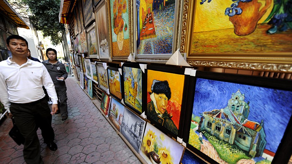 How do you spot a forgery in the art market? How can you tell if a medicine is a useless or even harmful fake which might make your illness even worse? Bridget Kendall is joined by Ghanaian anti-counterfeiting entrepreneur Bright Simons; art auctioneer and author of Breakfast at Sotheby’s – An A-Z of the Art World Philip Hook; and art historian Winnie Wong whose new book Van Gogh on Demand takes us on a trip to China, to a village where every year millions of copies of well-known oil paintings are churned out to be distributed for sale in around the world. Photo shows copies of Van Gogh's work in the artist village of Dafen near Shenzhen in southern China (Courtesy of Getty Images)