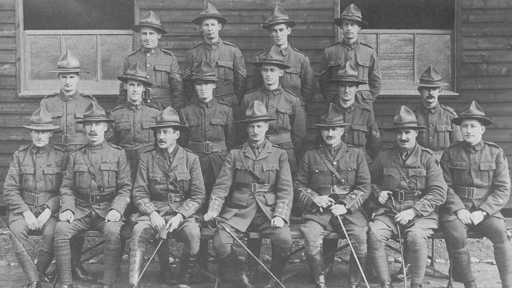During World War One thousands of soldiers of the New Zealand Rifle Brigade (NZRB) arrived for training at Brocton Military Camp on Cannock Chase in Staffordshire. NZRB were a specialist force and training was vitally important ahead of fighting. Their presence there would leave a lasting impression on the local people in the area. They became much loved. They even had their own mascot, Freda the dog who they found at the front and brought back. Freda’s grave remains on Cannock Chase. Training on Cannock Chase at Brocton Park included building a large scale model of the Belgium town of Messines which allowed troops to study the area in detail ahead of fighting. It was built by German prisoners of war under supervision from troops from New Zealand. This area was excavated in 2013 to reveal the model. The men enjoyed a good relationship with locals in the area and enjoyed visits, concert parties, musical concerts and tea dances. Some of the rifle brigade even ended up marrying local women before heading back to New Zealand. On leaving in May 1919, there was a huge ceremony in Stafford town centre with hundreds of people turning up to wave goodbye to the New Zealand troops. Location: Brocton Park, Cannock Chase, West Midlands WS12 4PT Photograph of NZRB depot HQ staff (1917), courtesy of Kippenberger Military Archive, National Army Museum, New Zealand Presented by BBC WM’s Daz Hale
