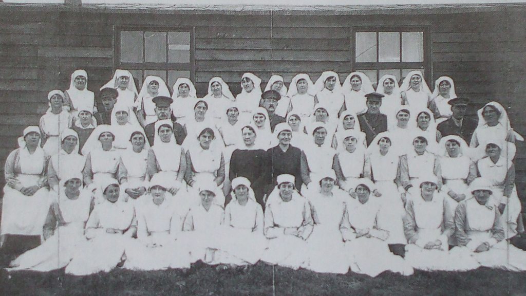 With medical services becoming essential in France, Lord Derby appealed to the merchants of Liverpool to provide funding for facilities. Within 24 hours, enough was raised to build the Liverpool Merchants Mobile Hospital. This was a timber, collapsible structure that was shipped to Etaples and set up behind trench lines. It was fully equipped and had space for 200 beds – rising to 250 in an emergency. Before it made the journey, the building was put up in Sefton Park. People paid to have a look around – providing further funding for the hospital. It was under the instruction of the British Red Cross Society, but it was funded, built and staffed entirely by Liverpool people – the only UK hospital to be raised by a single city. The Liverpool Mobile Merchants Mobile Hospital remained in Etaples – moving only once after being hit by a shell – until 1919, having tended to over 18,000 patients. Location: Sefton Park, Liverpool L17 1AP Photograph of Liverpool Merchants Mobile Hospital staff in France 1917, courtesy of Ann Clayton Presented by Caroline Dunlop