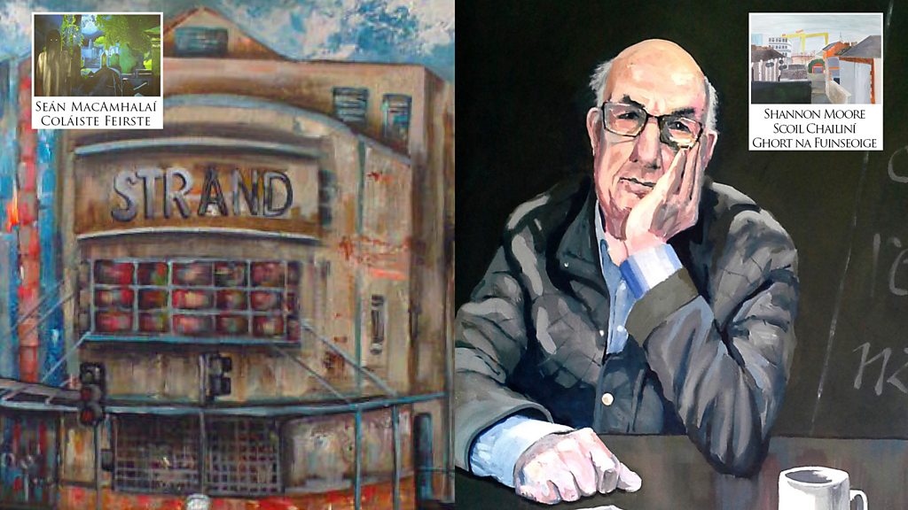 Labhraíonn Robert McMillen leis an ealaíontóir Michael Doherty faoin taispeántas “Idir Dhá Aigne” a d’fhás as togra ina raibh Michael agus ealaíontóir eile John Stewart ag obair le scoláirí ó Choláiste Feirste agus Ardscoil Chailíní Ghort na Fuinseoige chun oidhreacht coiteann Bhéal Feirste a fhiosrú. Artist Michael Doherty tells Robert McMillen about the exhibition “Idir Dhá Aigne” which evolved from a project in which Michael and another artist John Stewart worked with students from Coláiste Feirste and Ashfield Girls’ High School to explore Belfast’s common heritage.