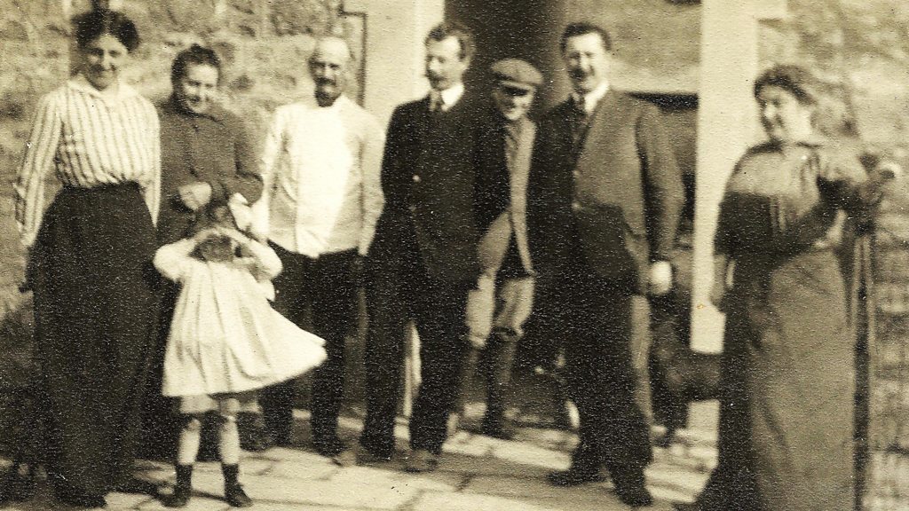 County Monaghan - bordered by Armagh, Tyrone and Fermanagh - is the smallest of Ulster's nine counties. During the war, its county town was a refuge for a small group of Belgians fleeing the German invasion of their country. Fifteen Belgian refugees arrived here in October 1914 after being invited by Leonie Leslie, from the Castle Leslie estate. Among them were the de Neves, who had escaped with their three young daughters and a cousin. Once in Monaghan, the girls visited local farms and taught the women how to embroider. Their skills proved so popular they went on to set up the Belbroid lingerie factory in the town, together with the local postmaster. Belbroid undergarments sold at home and abroad. There was even a Belbroid salon in Dublin, and the factory continued to operate until the 1940s. Adrienne Czerwin-Abbott is the granddaughter of Sylvie de Neve. She takes up the story at Belgian Square, outside the house where the family lived during the war years. Location: Belgian Square, Monaghan, County Monaghan. Latitude: 54.254954 Longitude: - 6.966204 Image of members of the Belgian refugee community in Monaghan town Image courtesy of Castle Leslie Estate