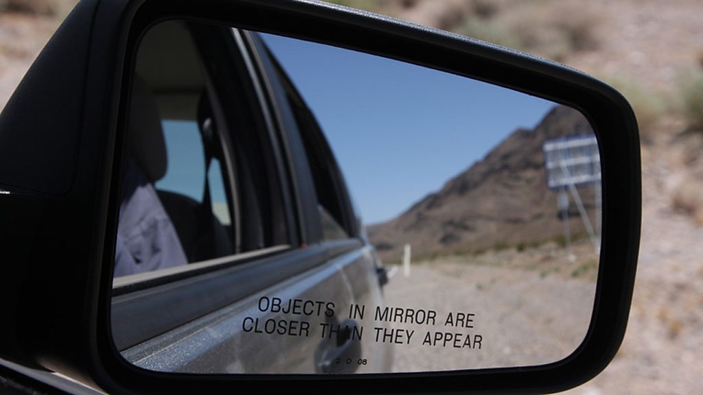 Most traffic accidents are caused by human error. Engineers are designing vehicles with built in sensors that send messages to other cars, trucks, bikes and even pedestrians, to prevent collisions happening. The idea is to make the vehicles react to whatever's going on faster than the human drivers. Jack Stewart drives around the university town of Ann Arbor, in Michigan, in some of the many vehicles that are fitted with experimental devices in the world's largest connected vehicles project. He finds out how the system works from researchers at UMTRI, the University of Michigan's Transportation Research Institute, including the director, professor Peter Sweatman and human factors expert Dr Jim Sayer, Kirk Steudle, Director, Michigan Department of Transportation and a resident who has had her car fitted with an experimental device. (Photo: Right hand wing mirror, Nevada, USA, BBC copyright)