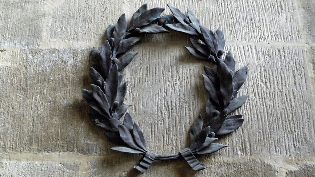 Brilliant, dashing, charming and influential; Raymond Asquith was surely destined for a great career in the public eye. Described by his stepmother, Margot Asquith, as ‘intellectually one of the most distinguished young men of his day’ it seemed as if the world was at his feet in the years leading up to 1914. Yet he came to optimise that Edwardian generation of ‘bright young things’ who had their potential cut short by war. Born in 1878, Raymond shone at school in Winchester and went on to have a formidable university career at Balliol, winning scholarships, becoming president of the Oxford Union and taking first class honours in classics and law. In 1902 he was elected a Fellow of All Souls and was called to the bar two years later. Not only was he a talented barrister, an aspiring politician and a powerful orator but he was also a prolific and eloquent writer of letters, hundreds of which survive to this day. For the vast majority of the British public though, he was known only as the prime minister’s son. Raymond was the eldest child of Herbert Henry Asquith, the man who declared war on Germany in August 1914. Two years later, in the last months of his premiership, he had to endure the anguish of his own son and heir being killed in the fighting he had sanctioned. Late in 1914 Raymond joined the 16th Battalion; The London Regiment as a second Lieutenant and the following summer he transferred to 3rd Battalion; Grenadier Guards, becoming a Staff Officer. Despite this he was keen to see action on the Western Front, so he made a request to return to active duty. On 15th September 1916 he led an attack near Ginchy but ‘before his regiment had been in action 10 minutes’ he received a bullet wound to the chest. He was brought back to the British lines and taken to a dressing station but it was too late. Raymond Asquith was 37-years-old and left a wife, Katharine, and three young children. Margot Asquith would later say that had he lived “he would have made the world ring with his name”. Like all Britain’s fallen, Asquith’s remains stayed overseas. Even if his father had privately wanted his son repatriated, he knew it was both insensitive and politically impossible. His grave is in the Guillemont Road cemetery on the Somme. Like all the others there he has an Imperial (now Commonwealth) War Graves Commission headstone. His alone is inscribed with a poignant Shakespearean quotation from the conclusion of Henry V: ‘Small time but in that small most greatly lived this star of England’. Such was his promise and so great was the impact of his death that ‘a corner of a foreign field’ would never be enough. Mells is a pretty village in an area of Somerset generally overlooked by the summer tourists. It’s here that Katharine’s family, the Horners, had lived for generations and where their sorrow would inspire a special place of remembrance. Asquith’s memorial is not typical of the age. It’s made up of eleven lines of Latin text, carved into the inner wall of the church tower by the notable sculptor Eric Gill. Above it sits a beautifully intricate brass wreath designed by the leading architect Sir Edwin Lutyens. But like countless numbers of headstones, inscriptions, name plates and simple wooden crosses all over the country and throughout the world, it bears witness to the human cost of war. Location: Church of St Andrews, Mells, Somerset BA11 3PW Image shows a brass laurel wreath by the designer and architect Sir Edwin Lutyens, which adorns Asquith’s memorial