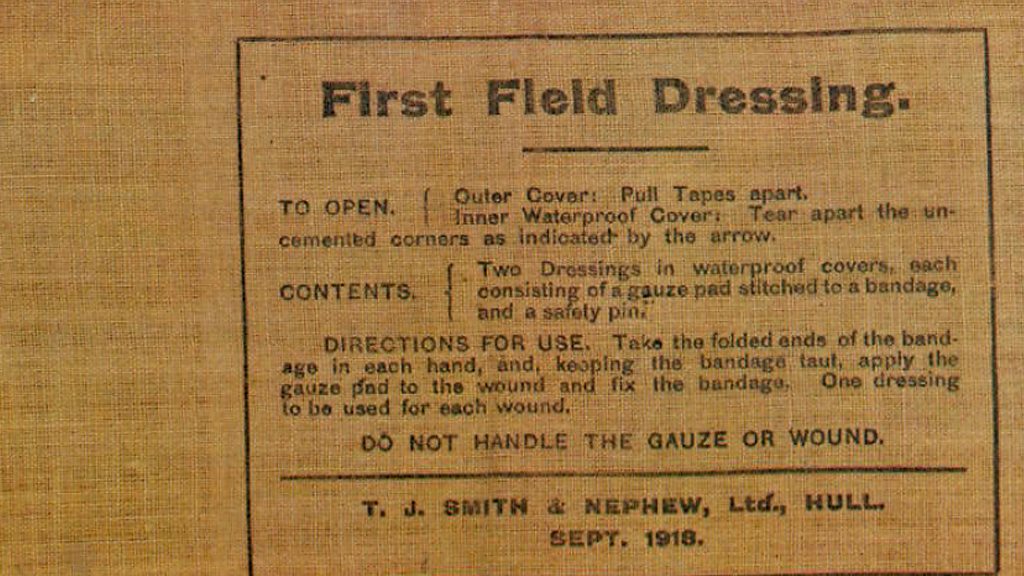 Today it’s a global medical technology business with offices worldwide, but go back 100 years and you’ll discover its roots tied firmly to the events of World War One. In 1913, under the supervision of Horatio Nelson Smith, TJ Smith and Nephew Limited was a firm with around 50 employees. The company had mostly moved away from its initial business of cod liver oil to a manufacturer of surgical dressings and were well prepared for events that would change the company forever. Days after the outbreak of WW1, H.N Smith had been given orders from the French president to provide surgical and field dressing supplies for his government; awarding TJ Smith and Nephew Limited with a contract for £350,000 for delivery within 5 months. The company expanded its base on Neptune Street in Hull during the war; growing to over 1,200 employees and is still there 100 years on. The company now produces the modern equivalent of the first field dressing, developing products with surgeons currently dealing with the aftermath of modern warfare. Location: Smith & Nephew, Neptune Street, Hull HU3 2BP Image: Label from a field dressing pack supplied to troops by Smith & Nephew