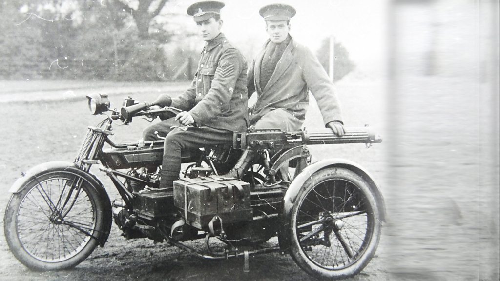 Hewell Road in Redditch was home of the Royal Enfield motorcycle. In early 1914 the firm’s publicity department had strengthened a six horsepower combination chassis and replaced the sidecar with an old Maxim gun, which they took around exhibitions to represent their slogan 'Made like a gun'. It didn't go down well with everybody as the Irish Customs had impounded it on one visit as they felt it was too "lethal looking". At the outbreak of war the display stand was taken to the Ministry of Defence who placed an order. Vickers machine guns were used on the sidecar chassis and they could be swivelled in any direction and even up to take a shot at a passing plane Motorcycles were used by messengers to keep the front line supplied with information, ammunition and provisions, and often travelled at night without any lights. Many bikers, together with their machines, were recruited through the pages of The Motorcycle magazine. The Enfield factory was also supplying other countries – the first order of the war came from Belgium, who ordered 50 of their 3hp bikes. Orders from France, Denmark and Russia followed. There was a huge demand for bicycles both for the front line and at home. The Redditch Advertiser in 1914 reports that the factory was making 500 bicycles per week for the War Office - they had a 24 inch frame and 28 inch wheels, slightly upturned handlebars and clips to hold a gun. The Redditch factory had never been as busy and many departments operated night shifts to cope with the demand. On 17 August 1915, a year after the outbreak of war, the Government declared that the Royal Enfield factories were controlled establishments and that they could only supply the war effort. In 1956 Enfield of India started assembling Bullet motorcycles under licence from UK components, and by 1962 they were manufacturing complete bikes. Enfield of India bought the rights to use the Royal Enfield name in 1995 and production continues to this day. Royal Enfield is now the oldest motorcycle brand in the world still in production. The Redditch factory closed in early 1967. Some of the original factory buildings are still in use. Hewell Road, Redditch, Worcestershire B97 6BY Photograph of an Enfield motorcycle courtesy of Anne Bradford Narrated by Nicola Goodwin with Anne Bradford