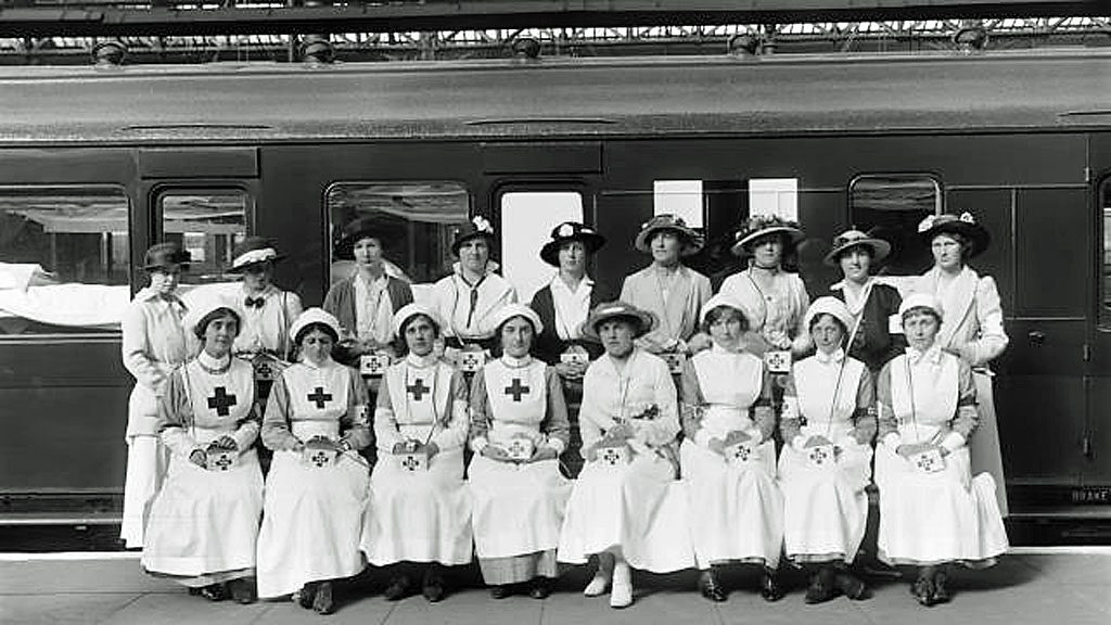 During World War One, hospital trains ferried casualties back from the Western Front to Snow Hill Station in Birmingham. These trains were specially designed to allow nurses to continue to care and treat for patients as they were transported back to hospitals around Britain. The trains left south coast ports in England such as Southampton and Portsmouth after picking up wounded men. Many made their way to Snow Hill Station where they were treated at local hospitals. Some of the men were walking wounded whereas others would have needed stretcher bearers when they arrived at Snow Hill Station in the centre of Birmingham. They would then be taken by motorised ambulances to various hospitals. During periods of intense fighting on the Western Front hundreds of men arrived at Snow Hill stations platforms, many still with fresh injuries sustained in battle. The trains were transformed into small makeshift hospitals with intricate treatment and care facilities. The nurses often had to work in cramped conditions with bunks either side of the carriages. On board were medical officers, nurses and orderlies. On any particular hospital train there would usually have been two or three trained nurses which meant a busy shift for those working on the trains. Location: Snow Hill Station, Birmingham B3 2BJ Image: Nurses by a hospital train, courtesy of the National Railway Museum