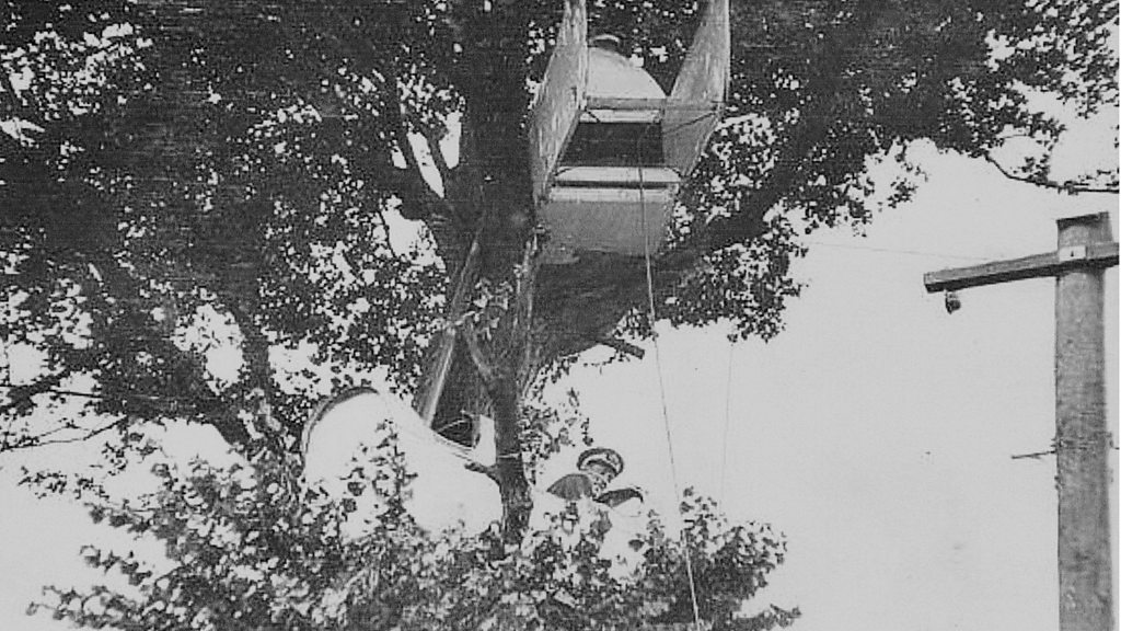 At the outbreak of war, the University of Reading offered up Wantage Hall and other premises for military use. Initially occupied by the Royal Engineers, the growing need for pilots prompted it to be taken over in December 1915 by the Royal Flying Corps (RFC) which established a School of Instruction, soon to become the No 1 School of Military Aeronautics. Tens of thousands of men completed a pioneering four week training course for pilots, observers or equipment officers, which included everything from Morse code, engines and map- reading to wireless and photography. Towards the end of the war, instruction on the use of machine guns was also incorporated in the training. A small number of women trained as riggers and fitters, learning how to maintain the wires and canvas on the aeroplanes. In 1918, the RFC employed an innovative approach to training in artillery spotting; by lodging two fuselages in trees alongside the road. The first training manuals for the industry were produced at Reading with 300 women employed to illustrate them, and the newly built jam factory at Coley Park near the River Kennet was also requisitioned as an aerodrome, remaining in use until 1919. Officers came from around the world to train at Reading, including the RFC’s only Japanese fighter pilot. Location: Wantage Hall, University of Reading, Reading, Berkshire RG1 5JG Image: RAF aircraft in trees as part of training exercise, courtesy of Andrew D Bird via Royal Air Force Museum London Interview with James V Gascoyne recorded in 1972 courtesy of IWM Presented by BBC reporter, Janice Hunter