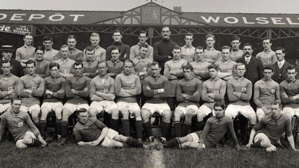 Despite the outbreak of war the 1914/15 football season went ahead as planned. Then as the situation deteriorated on the continent; league football was finally suspended in 1915. As the war progressed news filtered home of the 11 players, from Bradford City and Bradford Park Avenue (then just known as Bradford), who had paid the ultimate price. Bradford City players Jimmy Speirs, Evelyn Lintott, George Draycott, Ernest Goodwin, James Comrie, Jimmy Conlin, Harry Potter, Gerald Kirk and Robert Torrance and Bradford Park Avenue players; Donald Bell and Jimmy Smith, were all killed during World War One. Some had yet to realise their full potential – like reserves Draycott and Goodwin. Others like Speirs who was captain and goal scorer in the FA Cup Final, had been able to show their greatness on the pitch before war interrupted and ended their lives all too quickly. Location: Bradford City Stadium, Valley Parade, Bradford BD8 7DY Image: Only known photo of Bradford City during the war. 1914 – 1915 team group. Includes Robert Torrance on front row far right and Ernest Goodwin on back row second from right. Photograph courtesy of BantamsPast Museum Presented by Dominic Newton-Collinge and Tom Fletcher from BBC Radio Leeds’ Bantams Banter