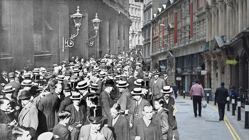 The 10th (Stockbrokers') Battalion was one of the first Pals' Battalions, a unit of men already friends and colleagues who had signed up together, to serve together. A former military officer, the Honourable Robert White wrote to the Stock Exchange and the Bank of England to ask if a group from the City of London would be willing to come forward and create a new regiment. After just a few days more than one thousand men arrived at his offices at Throgmorton Street to sign up. Many of the men who signed up would have been eligible to apply for officer commissions but the creation of the Stockbrokers' Battalion allowed them a much quicker route into the military. The Stockbrokers' went on to serve in France and Belgium and saw action at Ypres and the Somme. Location: 5 Throgmorton Street, City of London EC2N Image: Throgmorton Street during the war, courtesy of IWM, compared to a century on