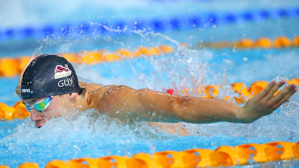 England's men's 4x100m relay swimming team took gold with victory over Australia at the Commonwealth Games.