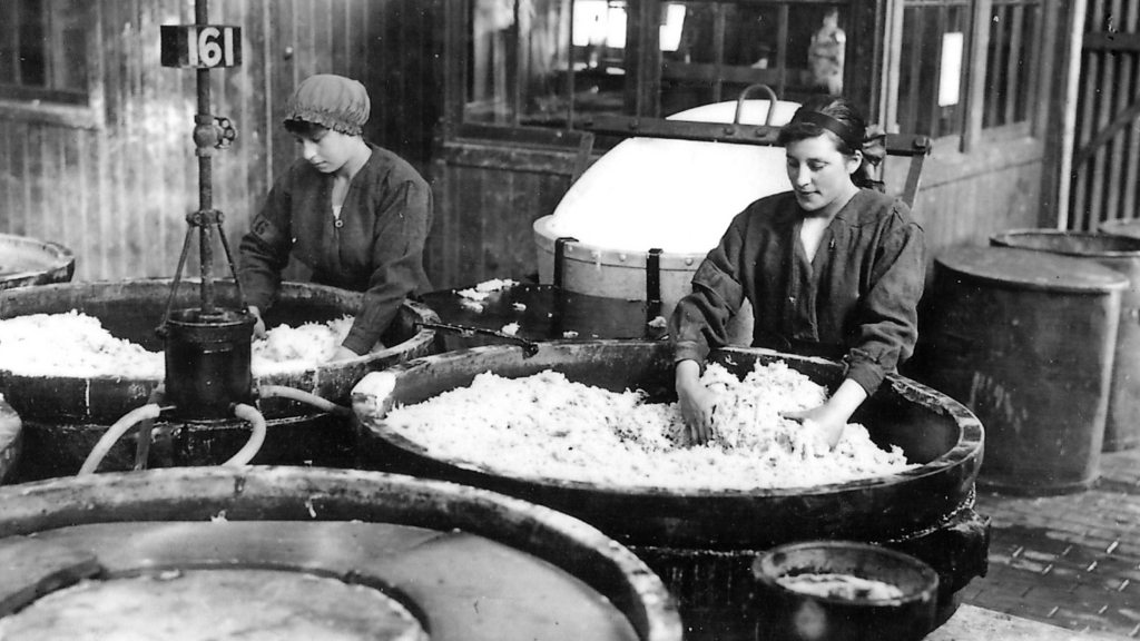 DG12 6TQ - Gretna, Dumfries and Galloway HM Factory Gretna was Britain’s largest cordite factory during World War I. It was built by the Ministry of Munitions in direct response to the Shell Crisis of 1915. The scale of the factory was vast, stretching nine miles from Longtown in England to Dornock in Scotland. Some 9000 women and 5000 men were employed in the dirty and dangerous work of mixing the high explosives. The cordite mix was once described as “the devil’s porridge” by Arthur Conan Doyle when he visited HM Factory and the name stuck. “It wasn’t just the factory itself that dominated the landscaspe,” explains author and historian Trevor Royle. “There was also a lot of domestic accommodation – the people who worked in Gretna lived there as well. There was a huge encampment with a cinema, restaurants and bakeries – a self-contained unit.” Life for the mainly women factory workers was long, dangerous and tiring. Because of the nature of the cordite mix, the workers were forbidden to wear or bring in anything to the factory that might react with the explosive and set it off. Even innocuous objects such as metal hairpins, buttons and even knitting needles were banned – and this was rigidly enforced with routine searches of the workers and the prospect of fines. “HM Factory Gretna was crucial to the British war effort,” says Trevor Royle. “By 1915 it had become clear that Britain needed vast numbers of high explosive shells and that the shells they had been using up to then were absolutely useless. High explosives were the future – and HM Factory Gretna supplied it.”