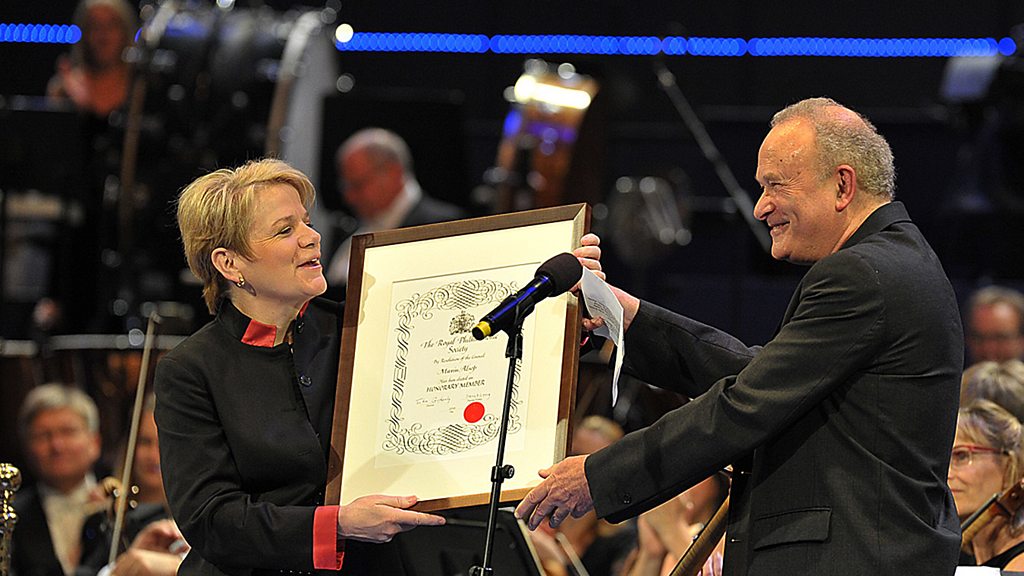 Trustee of the Royal Philharmonic Society, Colin Matthews awards conductor Marin Alsop the much sought after Honorary Membership.