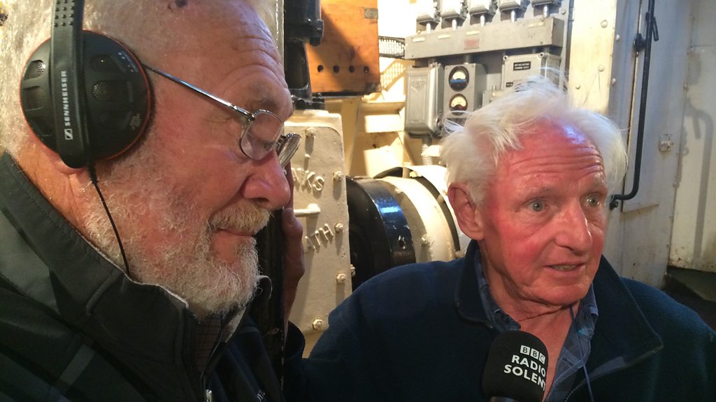 Sir Robin Knox-Johnston takes a tour of historic tug Challenge with Jerry Lewis.
