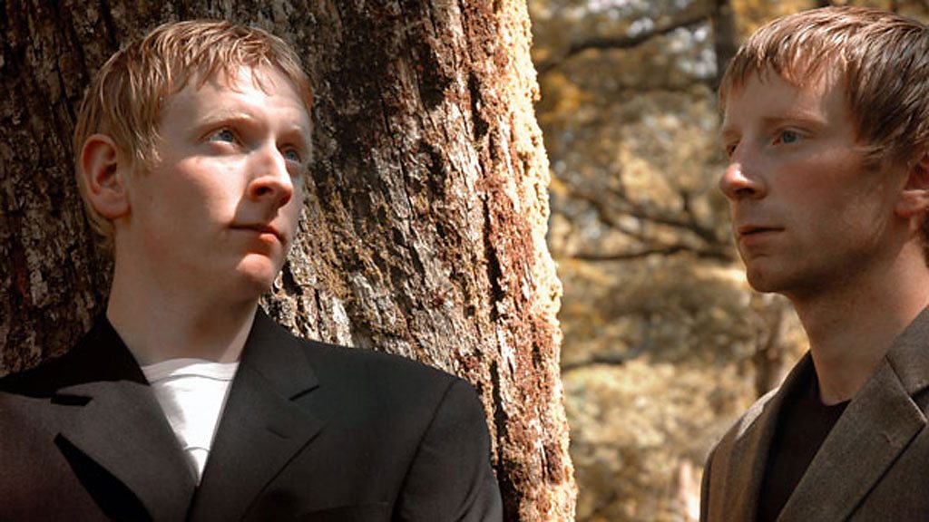 Manon Rogers yn gofyn wrth Ynyr o'r band Brigyn i berfformio cân Queen.