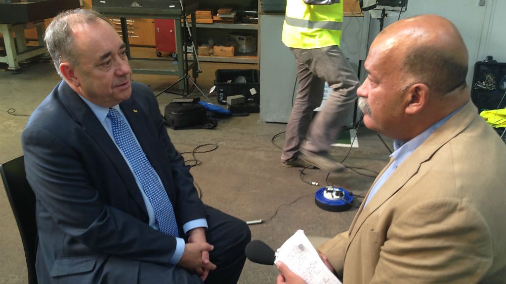 Scotland's First Minister Alex Salmond says "fearmongering" by Westminster is making No voters turn to the Yes campaign. He said people did not find "scaremongering" tactics "persuasive" and they would prefer to vote for something "optimistic". Asked by chief political correspondent John Pienaar if some Yes Campaign supporters had been intimidating others, Salmond said the majority of voters had behaved "impeccably". However, he added that all supporters on both sides should "behave with respect" and those who acted otherwise should be "condemned". This clip is originally from Drive on Wednesday 17 September 2014.
