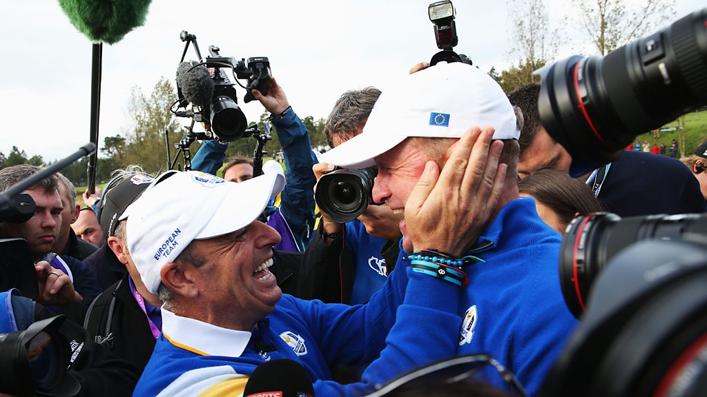 Jamie Donaldson's mother, Jackie, gives her reaction after watching her son win the Ryder Cup for Europe. BBC Radio 5 live's Clare Balding also speaks to the Welshman's father, brother and sister. Donaldson hit the winning shot to beat Keegan Bradley in Sunday's singles.