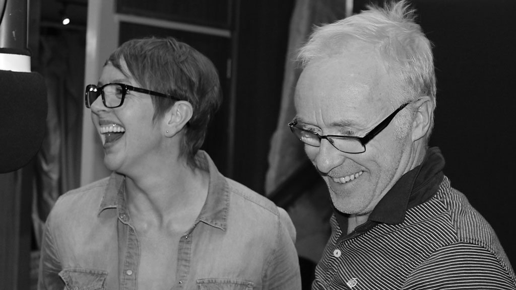 Yr actorion Victoria Plucknett ac Arwyn Davies yn trafod fersiwn cast Pobol y Cwm o'r ddrama radio Dan y Wenallt.