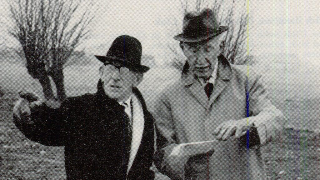 It’s one of the most iconic images of World War One. Soldiers, who were trying very hard to kill each other only hours before, stood in no man’s land and shook hands. The Christmas truce of 1914 has assumed legendary status yet it did happen for all that, and men from Wiltshire told of their part in it during a BBC TV documentary in the 1960s. Walter Scott Shepherd was a retired Lt Colonel when he returned to Fleurbraix in 1968. With him was retired Regimental Sergeant Major H J Wilkins. They told the BBC how, on Christmas Eve, they saw candles adorning Christmas trees in the German lines, only yards away. On the morning of Christmas Day, Colonel Shepherd recounts how an early mist offered an opportunity to repair trench parapets. When the mist lifted quickly, exposing the Wiltshire soldiers to the enemy, who were repairing their trenches as well, neither side fired. That tense moment led to paces into no man’s land, extended hands to shake, and exchanges of cigarettes and photographs. The Christmas truce only lasted days and deadly combat resumed with the New Year. Location: Salisbury, Wiltshire SP1 2EX Image: Captain Shepherd and RSM Wilkins in 1968