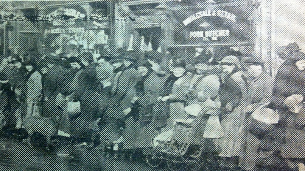 A group of women in Rugby during World War One were pioneers in consumer power. The war provided a problem on the home front for the housewives of Britain as prices continued to rise. Food shortages sparked food queues, frustration and hoarding. There was a phrase at the beginning of the war and throughout that women were chancellors of the exchequer in their own homes, they knew what it was like to balance a budget and make sure that their families were fed properly. Prices increased on all the basics: rent, fuel and clothing as well as food. So what could these desperate housewives do? The Rugby Housewives Committee, and similar groups, were formed. They began to use tactics which were based on the power they had as consumers. Food became a growing concern about not only availability but quality as well. Many were aware that in Germany there was hunger that led to food riots and soldiers threatening to leave the front. Food Control Committees were set up for every local authority in the UK and the government said that there must be a woman on every committee; it was recommended that they should be housewives. Rugby Housewives Committee was set up in 1913, at the beginning of the war, making them one of the first evidenced groups to demand this fairness. Their campaigning, along with many other housewives across the country led to a real change. By the end of 1917, rationing was introduced – a WW1 invention that is often associated with WW2. It was all about fairness and equality: so that the poor didn’t starve whilst the rich ate. Location: Rugby, Warwickshire CV21 3BZ Image: Food queues in Coventry when rationing was imposed, courtesy of Coventry History Centre Presented by Siobhan Harrison