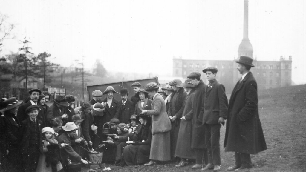 Just before war was declared, Chipping Norton had been a town in turmoil. Two thirds of workers from Bliss Tweed Mill - the largest employer in the town - had been involved in a bitter strike, including John Grantham's Aunt Nell. But the fortune of the strikers and the Mill changed when it was tasked to make khaki for soldiers’ uniforms during the Great War. Nell - who'd been on strike – wasn’t initially taken back on at Bliss Mill and moved up north to Rochdale. She later came back to Chipping Norton to weave khaki and as well as giving her a job back, the war also led to a pay increase. It's thought more than five thousand yards of khaki were woven at Bliss Mill in Chipping Norton. In total, hundreds of thousands of miles of cloth and flannel were ordered by the British government during the conflict. Location: Chipping Norton, Oxfordshire OX7 5JR Image: Bliss Mill strikers, courtesy of Chipping Norton Museum Presented by Serena Martin