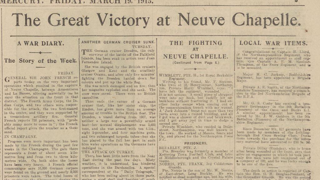 Northampton, Northamptonshire: Battles of Neuve Chapelle and Aubers Ridge