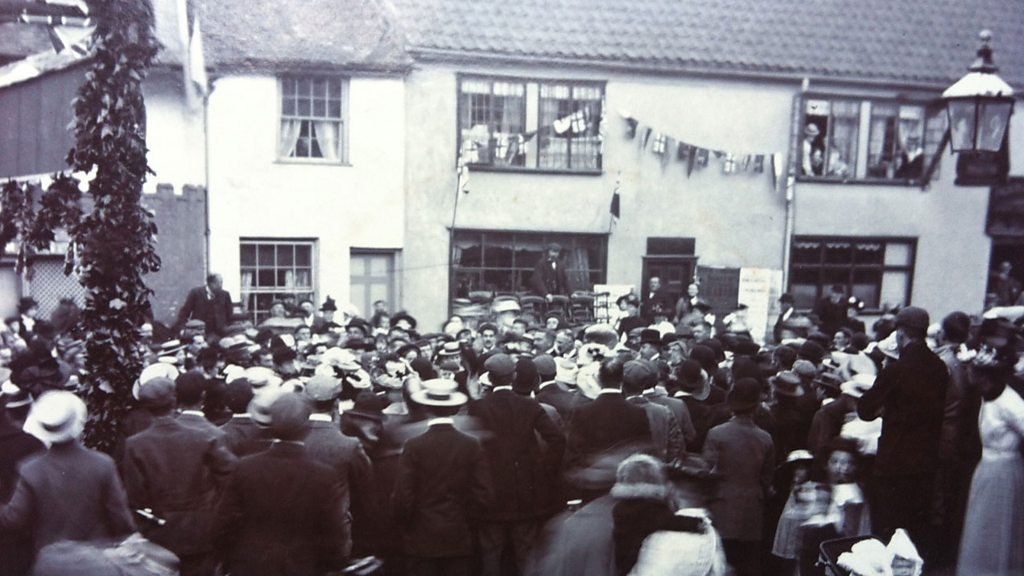 While the finger of Lord Kitchener pointed out from recruitment posters across the country during the early stages of World War One, for his cousins in the Suffolk town of Debenham life was changing dramatically. The men who worked for the family cider making business went to war, leaving Peronelle, whose father JB Chevallier was running the company at the time, to experience a new found freedom. Kate Arkell’s been to Aspall Hall to find out more. Location: Aspall Hall, Debenham, Stow Market, Suffolk IP14 6PD Image: When Lord Kitchener came to Debenham in 1902. Photograph courtesy of Henry Chevallier-Guild