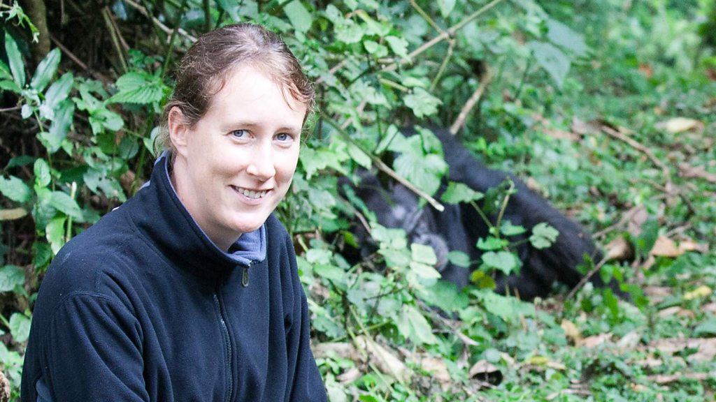 Katie Slocombe imitates chimpanzees during Animals: Watching Us Watching Them Watching Each Other at the Free Thinking Festival 2014, Sage Gateshead.