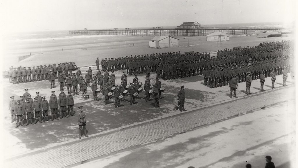 At the beginning of World War One, Irving Henry Jones was 16 years old, he quickly signed up under the pretence of being 21. Leaving behind the mines of Bedwas, South Wales, Irving headed off for military training which began on Salisbury Plain and then swiftly continued in Rhyl, North Wales. Dressed in his buttoned boots and boater on his head, Irving went on parade in Rhyl while waiting for a uniform. He was in his element, particularly when it came to physical training and thrived on activities such as boxing and racing. The men’s training was varied as it wasn’t yet established which division they’d eventually be part of. From gas attacks to marksman training and signalling, a great deal was covered. Rifle drill began with wooden sticks, later switched for dummy rifles before acquiring “the real thing”. While training, Irving’s regiment was subject to a check from “experts” seeking out underage soldiers. Irving explains that despite his young age he was shaving twice a day, so he jutted out his jaw and managed to pull the wool over the inspectors eyes because.. “I wanted to go!”. Irving explains that the majority of the Welch Regiment were miners, which he felt characterised them in a rather unique way. When their promised leave to visit home didn’t happen, the men decided to meet to discuss the matter “just like a meeting on top of the pit”. A decision was made to strike. While on parade on Rhyl sea front, the bugle went for the men to ‘fall in’, but nobody moved! After explaining themselves, the miners’ strike produced the desired result and the soldiers in training were granted their leave home from Rhyl. Irving has fond memories of his training in Rhyl as well as for the local community there. Billeted to No.6 Gronant Street, Irving recalls that he was taken in “like a son”. After specialising as a signaller, it was time to leave for France. The affectionate send off from the community along with gifts and best wishes were a highlight that Irving recalls. It wasn't until September 1915 that Irving boarded a ship to travel to the France, sailing at night in an attempt to avoid being spotted by German submarines. Overcome with seasickness Irving remembers “I wanted to die before I got there”. Location: Rhyl Promenade, LL18 3AY. Image: Royal Welch Fusiliers on the promenade at Rhyl, c.1915. Courtesy of Flintshire Archives